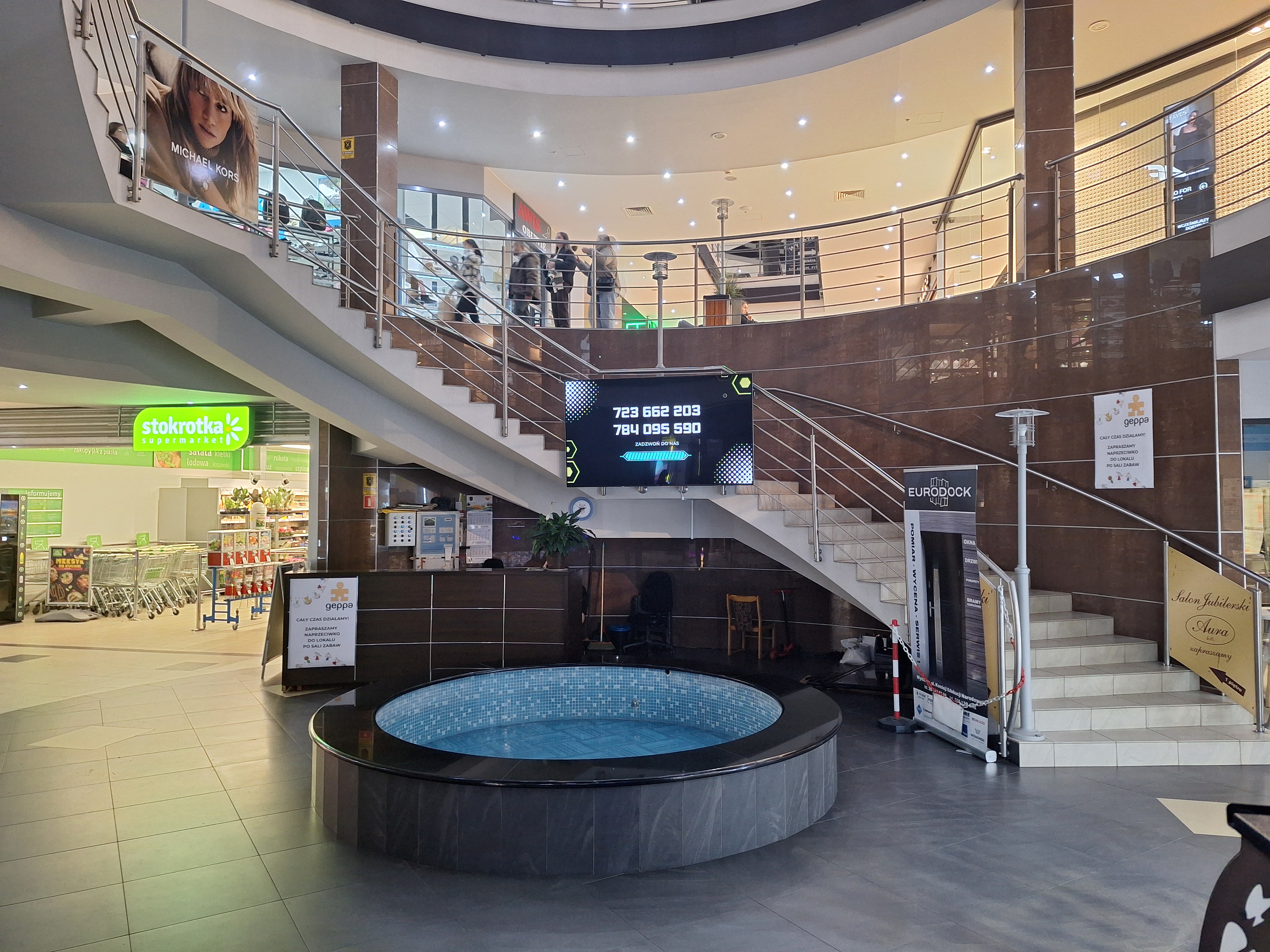 Profesjonalny montaż ekranów reklamowych w strategicznych punktach galerii handlowych.